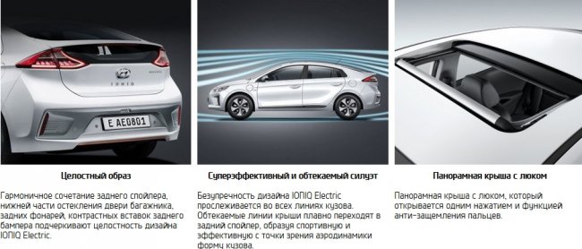 Hyundai IONIQ Electric – первый в истории компании серийный, полностью электрический автомобиль с выдающейся экономичностью. Полимерная литий-ионная батарея емкостью 28 кВт*ч, установленная в электромобиле, обеспечивает запас хода на одной зарядке более 280 км (по циклу EPA). Устойчивая езда, высокий уровень безопасности и эффективная экономия энергии обеспечивается благодаря использованию в конструкции кузова алюминия и высокопрочной стали, сообщают в компании.