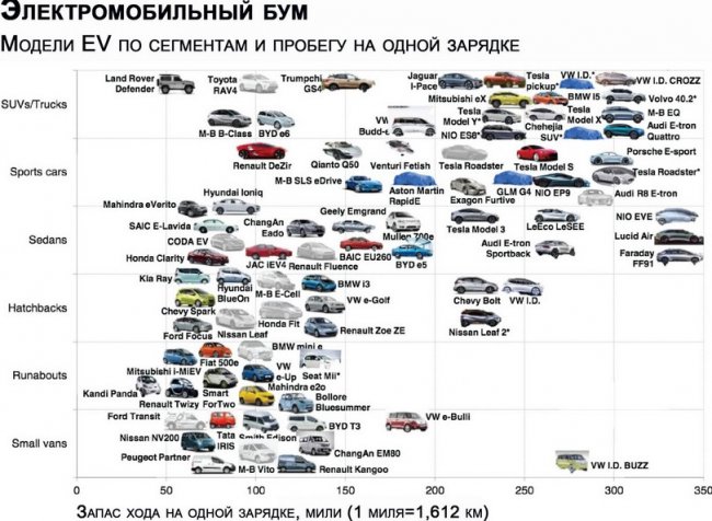 «К 2020 году в разных классах будет предложено более 120 различных моделей EV», – сказал Майкл Либрейх, основатель Bloomberg New Energy Finance. – Это отличные машины. На их фоне оснащенные двигателями внутреннего сгорания эквиваленты модели будут выглядеть старомодно».