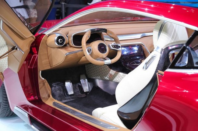 Кресла в салоне E-Motion разделены высоким центральным тоннелем. В передней и задней частях на нем расположены сенсорные панели для управления мультимедийной системой и прочими функциями. Сенсорные клавиши установлены и на обшивках передних дверей.