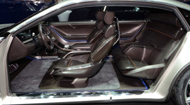 Внутри роскошь и элегантность автомобиля подчёркивает тёмно-коричневая обивка из дорогой кожи. Сиденья напоминают своим дизайном продукцию известной компании Eames. Крыша салона прозрачная и подсвечивается в темноте. По всей видимости, такие крыши станут визитной карточкой автомобилей, производимых Hybrid Kinetic Group.