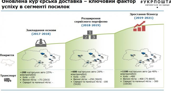 Украинское государственное предприятие почтовой связи "Укрпочта" планирует в 2017-2018 годах закупить 200-250 электромобилей для доставки почты. Об этом во время презентации стратегии развития "Укрпочты" на ближайшие пять лет сообщил заместитель генерального директора предприятия по операционной деятельности Александр Перцовский.