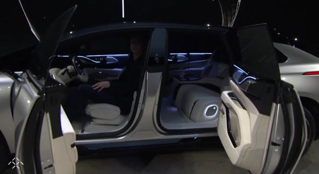 Дистанционное управление функционалом машины организовано за счет полной интеграции со смартфоном. Сенсорные датчики вместо дверных ручек, «умное» светодиодное освещение и индикация служебной информации, двери с автодоводчиками и защитой от попадания посторонних предметов – проще говоря, если на каких-либо концепт-карах встречалось какое-нибудь «цифровое» новшество, в электромобиле FF 91 оно обязательно есть.