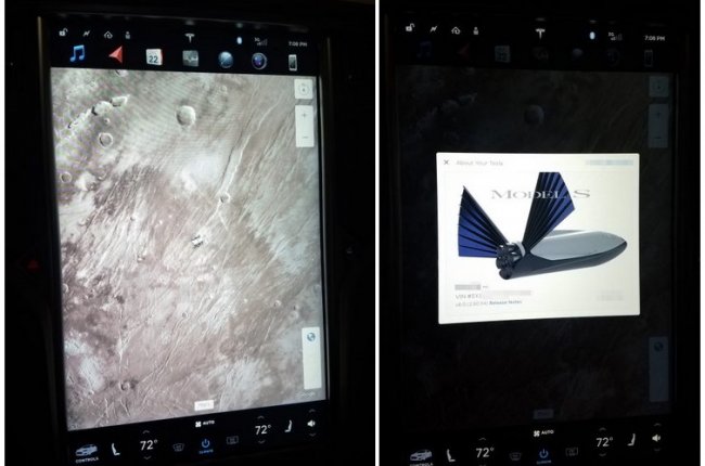 Возможно этим и объясняется новая «фишка» электрокаров Tesla: при введении кода доступа «Mars» и удерживании определенных кнопок новая «пасхалка» меняет обычные рендеры Molel S или X на межпланетную систему SpaceX c развернутыми солнечными панелями, затем перед пользователем открывается интерактивная карта Марса, которая отображает перемещение машины (в виде ровера НАСА Curiosity) вместо традиционного навигатора.