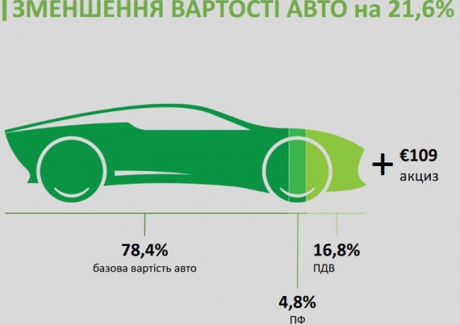 - Освобождение от уплаты НДС при ввозе электромобиля в Украину до 2021 года (ожидаемый эффект – -16,8% от стоимости транспортного средства);