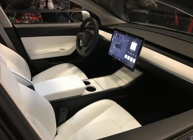 Наблюдатели сразу заметили некоторые изменения в эргономике интерьера электрокара. На месте руля была временная "заглушка" - похоже на то, что оригинальный руль был предварительно установлен, но его сняли перед тем как машина появилась на публике.