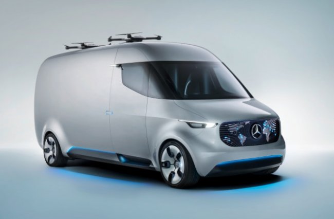 Немецкая автомобильная марка в сотрудничестве с компанией Matternet представила концепцию службы доставки товаров с помощью электрического фургона Vision Van. Планируется, что грузовик будет оснащен бортовым хабом для летающих беспилотников по доставке небольших грузов, в то время как сама машина будет развозить более крупные поклажи. Целью создания этой системы послужило стремление решить одну из главных логистических задач, получившей название «проблема последней мили».