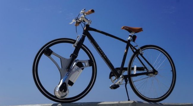 Американский стартап GeoOrbital объявил о старте предзаказов на одноименные электрические колеса, способные трансформировать практически любой велосипед в электробайк. Для этого была запущена кампания на Kickstarter и, хотя до ее окончания еще более 40 дней, сбор средств уже можно назвать более чем успешным – из минимально заявленных 75 тыс. на сегодня удалось собрать свыше 300 тыс. долларов.