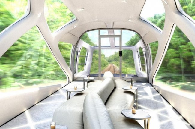 Поезд следует по самым разным пейзажам, и дизайнер подумала, что было бы здорово заставить его гармонично сочетаться с любым из них. Благодаря частично зеркальной поверхности и обтекаемому внешнему виду поезд должен будет «превращаться» в часть его окружения.