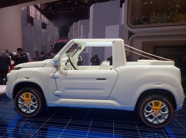 Так, в женевском концепте одна из двух дуг была заменена декоративными ремнями. Весь автомобиль оформлен в абсолютно-белом цвете «WHITE»: помимо кузова, в белый цвет окрашены даже колеса. Кроме того, по всей машине расставлены акценты в виде контрастных оранжевых полос.