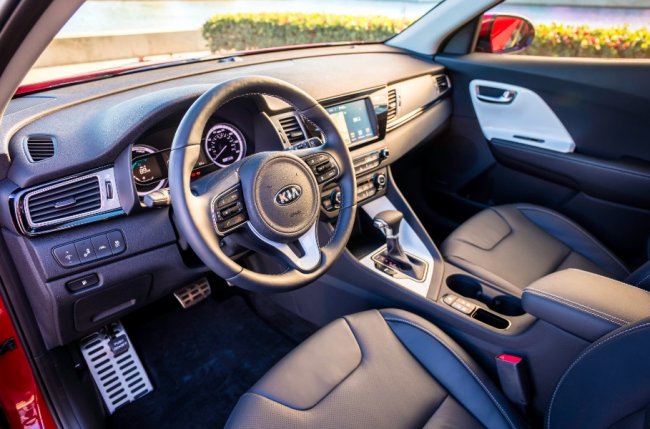Машина также может похвастаться высоким расположением сидений как в Kia Soul, что обеспечивает комфорт во время передвижения и удобную посадку. А благодаря размещению аккумуляторной батареи под задними сиденьями, Niro получил ровный пол для перевозки грузов, объемный багажный отсек и просторный интерьер салона.