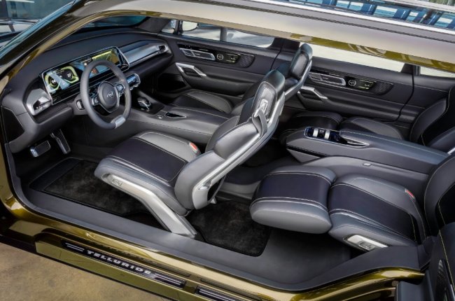 Как и все «автомобили будущего» на последних автосалонах, «Теллурид» (так называются химические соединения теллура, также в США есть город с таким названием) оснащен передовой электроникой. В частности, инженеры Kia разработали систему распознавания голоса и жестов Swipe Command, которая позволяет управлять устройствами мультимедиа с помощью простых движений руками. Предусмотрена система для беспроводной зарядки мобильных гаджетов. А, помимо руля, 3D-технологии использовались для создания элементов панели приборов и дверных карт. Функцию замка зажигания выполняет «умная» кнопка, распознающая отпечатки пальца владельца.