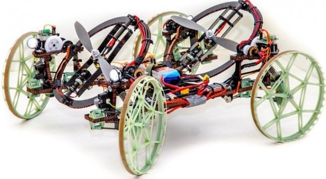 Аппарат представляет собой своеобразный гибрид мини-электромобиля и дрона: он оснащён двумя поворотными пропеллерами и четырьмя колесами. Для изменения направления тяги каждый пропеллер перемещается в двух плоскостях, в то время как одна из колесных пар обеспечивает управление движением.
