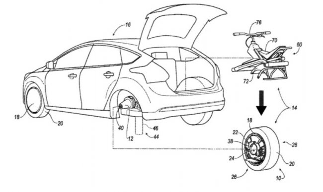 С патентной заявкой на свое изобретение представители Ford обратились в Управление США по патентам и торговым маркам. В представленных документах описывается дизайн системы, в которой заднее колесо автомобиля может быть трансформировано в моторизированное одноколесное транспортное средство с помощью дополнительного комплекта с сиденьем и рулевым управлением.