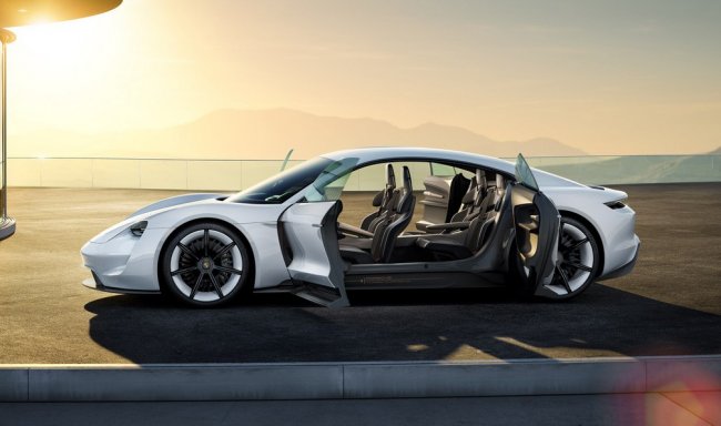 Концепт спортивного электромобиля Porsche Mission E дебютировал в сентябре на международном моторшоу во Франкфурте. Четырехдверный суперкар оснащен двумя электродвигателями (по одному на каждой оси) общая мощность которых составляет 447 кВт или 600 лошадиных сил.