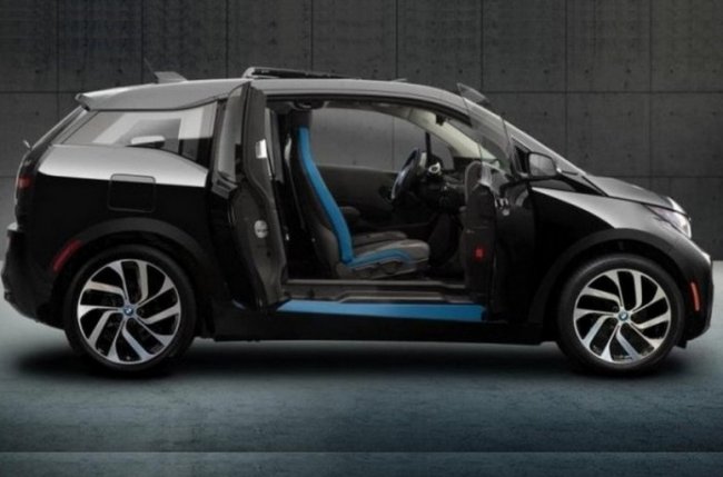 Справка. BMW i3 — электрический малолитражный хэтчбэк, первый серийный автомобиль BMW с нулевыми выбросами (ZEV). Кроме того, это первая массовая машина с использованием углепластика (CFRP). Продажи начались с 15 ноября 2013 года. Она весит 1250 кг, имеет карбоново-алюминиевый кузов и электродвигатель мощностью 170 л. с., работающий от литий-ионных аккумуляторов. В качестве опции «range extender» возможна комплектация двухцилиндровым бензиновым двигателем, работающим от бака объемом 9 литров, который выполняет функции генератора электроэнергии для подзарядки батареи, с ним пробег увеличивается до 350 км. Автомобиль имеет также спортивную версию i3 Concept Coupe.
