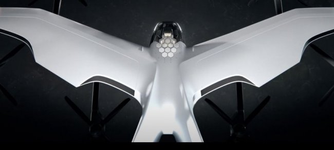 Модель представляет собой мультикоптер с 6 пропеллерами, установленными на коротких опорах вокруг довольно больших крыльев с обратной стреловидностью. Еще два поворотных винтовых двигателя закреплены на концах V-образного хвоста, консоли которого соединены горизонтальным стабилизатором.
