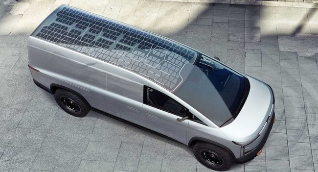 И пикап, и фургон будут оснащаться фотоэлектрической крышей, которую компания описывает как «уникальную технологию солнечной мозаики, обеспечивающую потрясающую визуальную сигнатуру, а также позволяющую собирать солнечную энергию для питания батарей».