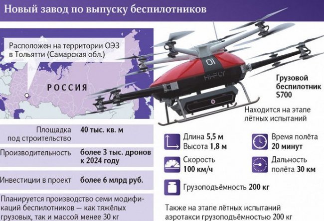 Группа «Эфко», известная в России в качестве крупной компании-производителя майонеза и разных видов масла, приступает к строительству в г.Тольятти крупного предприятия по серийному выпуску беспилотников гражданского назначения.