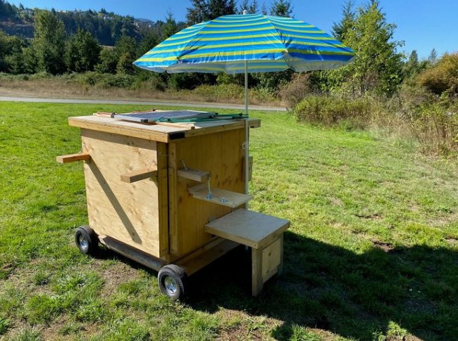 Центральный блок Mini Mansion предполагает оснащение варочной панелью, небольшим раскладным столом, комодом и даже мойкой. В верхней части смонтированы светильник и вентиляторы. Все электрооборудование получает питание от солнечной батареи мощностью 40 Вт. Электричество накапливается в бортовой батарее с напряжением 12 В. Самостоятельное изготовление такого «мобильного убежища» обойдется в 1112 долларов. Фабричная версия, предлагающая больший комфорт, будет стоить не менее 3000 долларов.