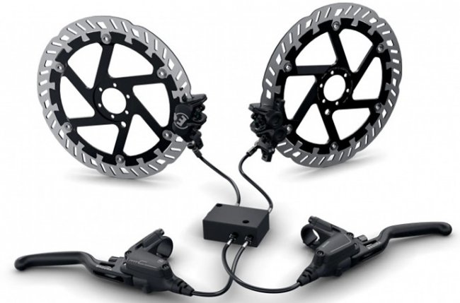 Система полностью механическая и работает на основе гидравлики. Шланги от тормозных рукояток ведут в блок интеграции, из него выходят шланги к тормозным колодкам. Когда активируется один тормоз, автоматически происходит включение и второго, при этом тормозное усилие распределяется равномерно между передним и задним колесами. Такое торможение на 40 % эффективнее, чем использование только одного тормоза.
