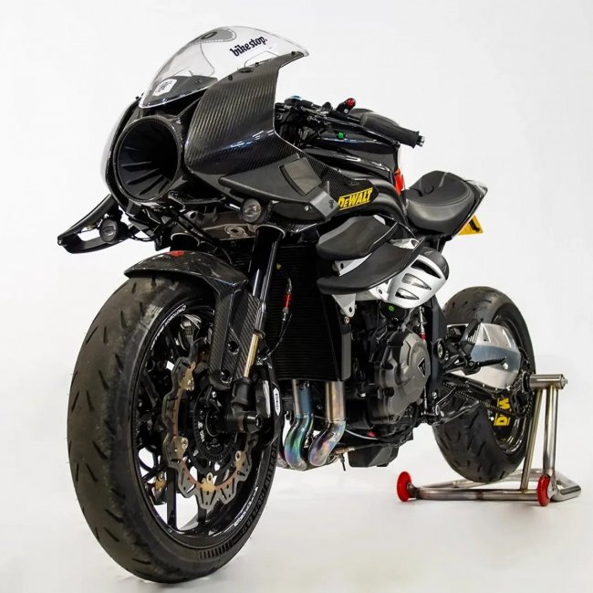 Triumph Speed Triple с индексом RR, один из самых быстрых кафе-рейсеров в мире, был доработан британской мастерской Thornton Hundred до фантастического уровня производительности. Благодаря установке нагнетателя Rotrex C30 мощность двигателя увеличилась до 400 л.с., что превращает этот мотоцикл в настоящего монстра. Несмотря на столь агрессивные параметры, мотоцикл полностью легален для езды по дорогам общего пользования.