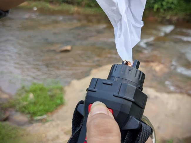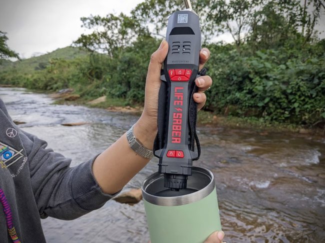 Многофункциональное устройство Lifesaber размером с кухонный нож обеспечит владельца запасом электроэнергии, осветит территорию, продезинфицирует воду с помощью УФ-лампы, поможет разжечь костер, благодаря плазменному воспламенителю (создает температуру порядка 1100 °C), включит сигнал тревоги и ослепит нападающего лучом стробоскопа.