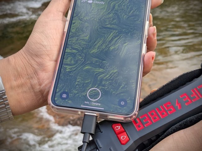 Будучи внешним аккумулятором, Lifesaber оснащен батареей емкостью 5000 мА⋅ч и портом USB-C для подключения любых типов устройств. Вес прибора 544 грамма.