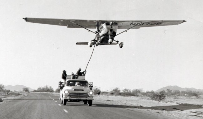 Если вы постоянный читатель Техкульта, то наверняка знаете о современной заправке самолетов в воздухе. Так вот — они этого не делали. Вместо этого каждая дозаправка выглядела как трюк из фильма «Миссия невыполнима» с Томом Крузом. Когда топливо подходило к концу, самолет снижался и летел медленно над шоссе — а грузовик сопровождения на земле ехал синхронно с ним.