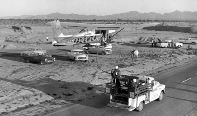 Все началось в середине 1950‑х годов в Лас-Вегасе. В то время отель‑казино «Hacienda» испытывал трудности с привлечением посетителей. Тогда техник по игровым автоматам и бывший пилот-бомбардировщик Второй мировой войны Роберт «Боб» Тимм предложил своему начальству рекламный трюк: пролететь на небольшом самолете без посадок столько, сколько выдержат человек и техника.