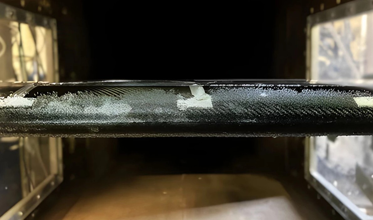 В настоящее время большинство самолетов используют тепло работающего двигателя для борьбы с образовавшейся ледяной коркой на крыльях, что, однако, негативно влияет на эффективность летательного аппарата. Немецкие исследователи из института Фраунгофера предложили более прогрессивный метод, позволяющий стряхивать лед.
