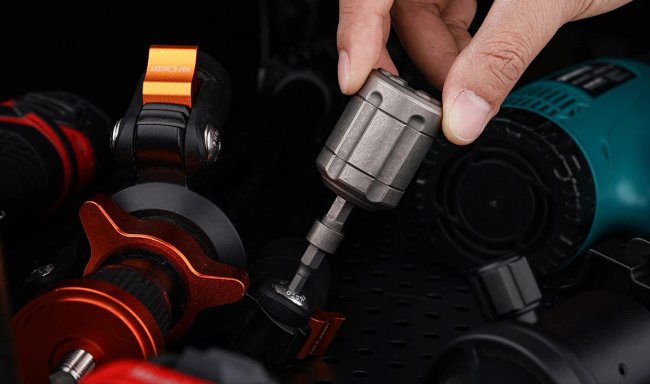 Открутив верхнюю часть, пользователь получает доступ к шести закрепленным на магнитах отверточным битам PH1, SL4, SL6, T20H, T8H и H3. После выбора нужной биты крышка закручивается на место, а бита вставляется в специальное отверстие, образуя с футляром полноценную отвертку.