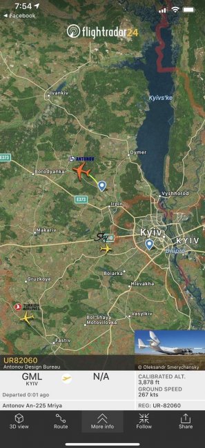 25 марта после модернизации, которая длилась полтора года, под Киевом начались испытательные полеты крупнейшего в мире транспортного самолета Ан-225 «Мрия».