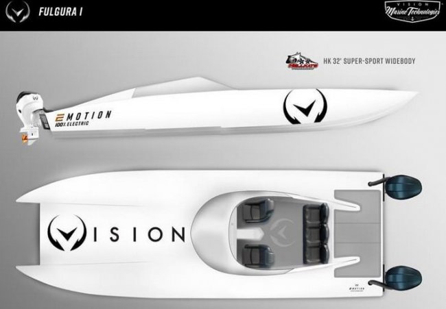 Совместный проект Vision Marine Technologies и Hellkats Powerboats предполагает изготовление полностью электрической версии спортивного катамарана Super-Sport Widebody длиной 9,8 м. Модель получит название Fulgura l и будет оснащена двумя электродвигателями E-Motion 180E. Как предполагается, ее спустят на воду в ноябре.