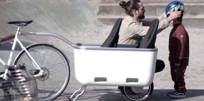 Обычно далеко не всем велосипедистам нужна помощь электромотора, но если им приходится везти за собой прицеп с грузом — дело другое. И здесь на помощь приходит электрифицированный велотрейлер Ein датской компании Biomega.
