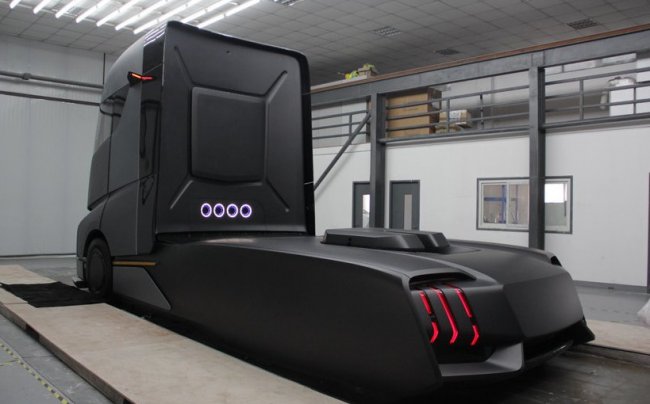 Большой пробег без подзарядки достигается в том числе благодаря обтекаемой форме грузовика, за счет которой автомобиль не только футуристично выглядит, но и обладает, как сообщается, лучшими в своем классе аэродинамическими показателями.