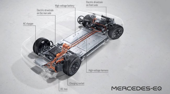 В основе электромобиля Mercedes-Benz EQS лежит новая платформа EVA. Модель получила 400-вольтовый аккумулятор с жидкостной системой подогрева и охлаждения. Батарея, составленная из литий-ионных элементов питания NCM 811, доступна в двух вариантах: 12-модульная с емкостью 107,8 кВт•ч обеспечивает пробег без подзарядки 770 км, а 10-модульная на 90 кВт•ч наделяет лифтбек запасом хода более 640 км. На аккумулятор дается гарантия 10 лет или 250 тысяч километров.