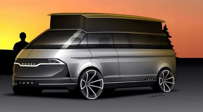 Теперь Skoda, судя по всему, собирается снова наладить в Чехии производство минивэна под названием 1203, только уже электрического. Компания представила изображения концепта будущей модели, созданные дизайнером Даниэлем Хайеком. На рисунках показана стандартная версия электромобиля и автокемпер с подъемной крышей.