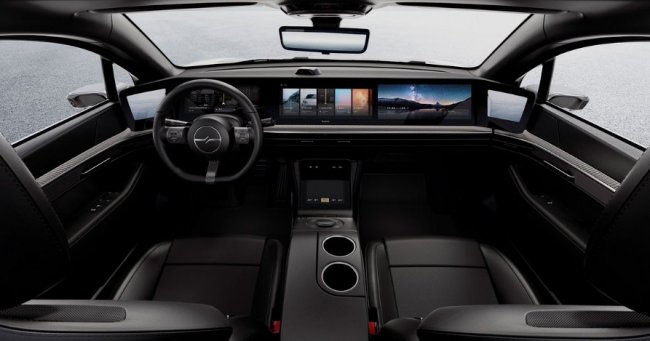 У прототипа Vision-S, показанного в видео, вся передняя панель занята дисплеями информационной-развлекательной системы. Ее наделят функциями голосового помощника, навигатора, медиаплеера и игровой консоли. А также она получит поддержку управления жестами, обновлений «по воздуху» и подключения к 5G сетям.