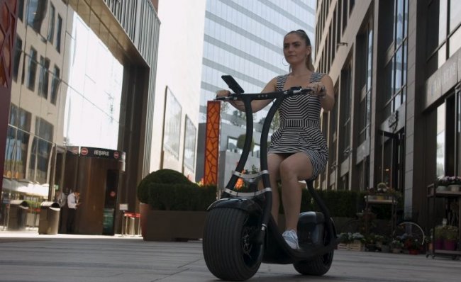 Компания Scooterson представила обновленную версию электрического самоката, или, скорее, легкого скутера. Отличительные черты модели — это широкие колеса и наличие сидения. Причем сидячее положение водителя позиционируется как основное.