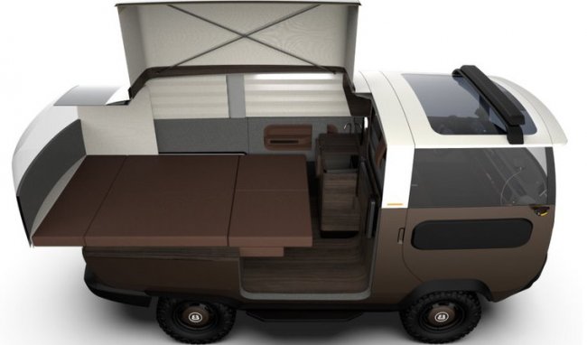 Любое из этих шасси совместимо с десятью типами кузовов. EBussy может становиться и микроавтобусом, похожим на Volkswagen T1, и кемпером, и фургоном, и пикапом, и самосвалом. Крое того, электромобиль обладает широкими возможностями по трансформации салона. Даже рулевую колонку можно быстро перемещать на правую или на левую сторону, или фиксировать по центру передней панели, так как физическая связь руля с колесами отсутствует, управление выполняется по проводам.