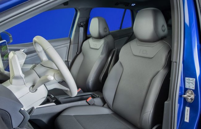 Благодаря компактной силовой установке в салоне ID.4 почти так же просторно, как в более крупном Tiguan. На передней панели выделяются два дисплея: 5,3-дюймовый, заменяющий щиток приборов, и 10-дюймовый (опционально — 12-дюймовый) сенсорный, отображающий интерфейс информационно-развлекательной системы.
