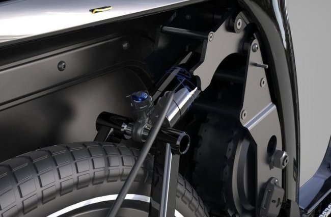 Энергии литий-ионной батареи хватает на 40 км. Два встроенных USB-порта позволяют заряжать от нее гаджеты. Предусмотрена возможность установки второго аккумулятора, благодаря которому запас хода увеличивается вдвое.
