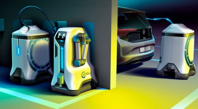 Volkswagen представил свое видение проблемы зарядки электромобилей на парковках, где нет соответствующей инфраструктуры. Она может быть налажена с помощью специальных роботов-заправщиков, полагают в компании. Управлять ими можно через мобильное приложение, и все что будет требоваться от водителя — это просто выбрать необходимую опцию в меню. Робот сам привезет зарядную батарею и подключит ее к автомобилю.