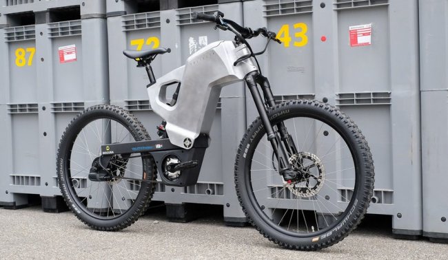 Велосипед выполнен в очень своеобразном дизайне и не всякому может показаться привлекательным. Основу составляет массивная литая рама из алюминия. А вот внутри нее, в педальном блоке, установлен мотор от немецкого производителя TQ, имеющий крутящий момент 120 Н/м. В зависимости от комплектации его мощность может составлять 250, 500 или 920 Вт.
