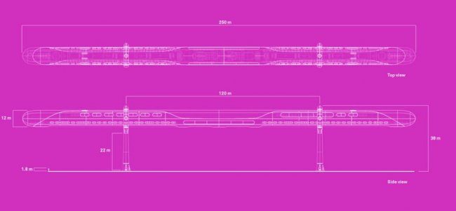 В то время как Hyperloop предполагает движение внутри вакуумных труб, пользователи AeroSlider будут наслаждаться прекрасными видами из окон. Пассажиры смогут путешествовать как в кабинах эконом класса, так и в роскошных, вмещающих целые спортивные комплексы. С характеристиками нового поезда на магнитах это легко можно позволить, ведь его капсулы будут иметь гигантские размеры – 250 м в длину и 12 м в диаметре.