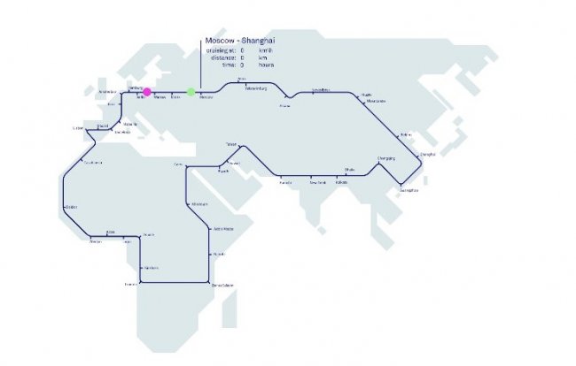 Основываясь на разработанной концепции и транспортных потребностях будущего, команда Manyone построила межконтинентальный маршрут, связывающий основные мегаполисы. Он предполагает, что добраться из Москвы до Шанхая можно будет за 12 часов, огибая при этом Гималаи и Альпы.