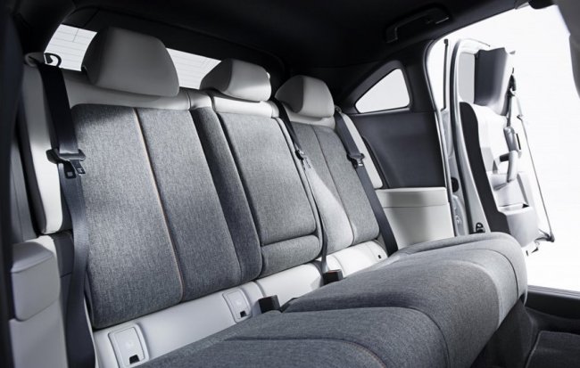 В отделке интерьера упор сделан на использование переработанных и экологически чистых материалов. Так, в частности элементы консоли, где кстати появился второй дисплей, и дверных ручек сделаны из пробки, а в обивке сидений появилась ткань на основе полимеров, полученных от переработки пластиковых бутылок.