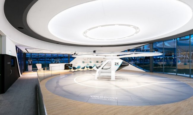 В новом коммуникационном центре Voloport также был представлен пассажирский коптер Volocopter 2X. В сентябре его успешно испытали над аэропортом в Хельсинки. Как говорят разработчики, это первый случай, когда такой аппарат выполнил полет в полной интеграции с системами международного аэропорта.
