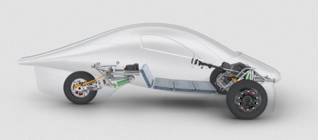 Это просто огромный показатель. По задумкам, электромобиль будет использовать менее чем 100 Вт*ч/км, что эквивалентно 0,7 л/100 км. Подход такой же, как и прежде: создать сверхлёгкий крепкий комбинированный корпус, дополнить его замечательной аэродинамикой, основанной на идеях аэрокосмической отрасли, и преподать всё это как комфортный двухместный трёхколёсный автомобиль.