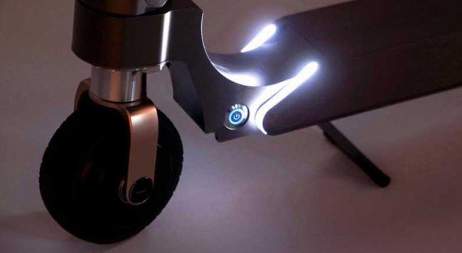 Портативный скутер весом около 7,7 кг. Уникальный дизайн делает его легче и компактнее, чем любой подобный продукт. Скутер оснащён цифровым дисплеем, где отображается состояние батареи и скорость. Для езды в ночное время пригодятся по две стильные передние и задние LED-фары.